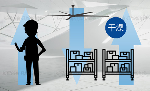 雨季空氣濕度大,設(shè)銹蝕、產(chǎn)品受潮、滋生細(xì)菌。凡斯大型工業(yè)吊扇加速空氣流動(dòng),快速吹散濕氣,保持室內(nèi)干爽、貨物產(chǎn)品干燥。